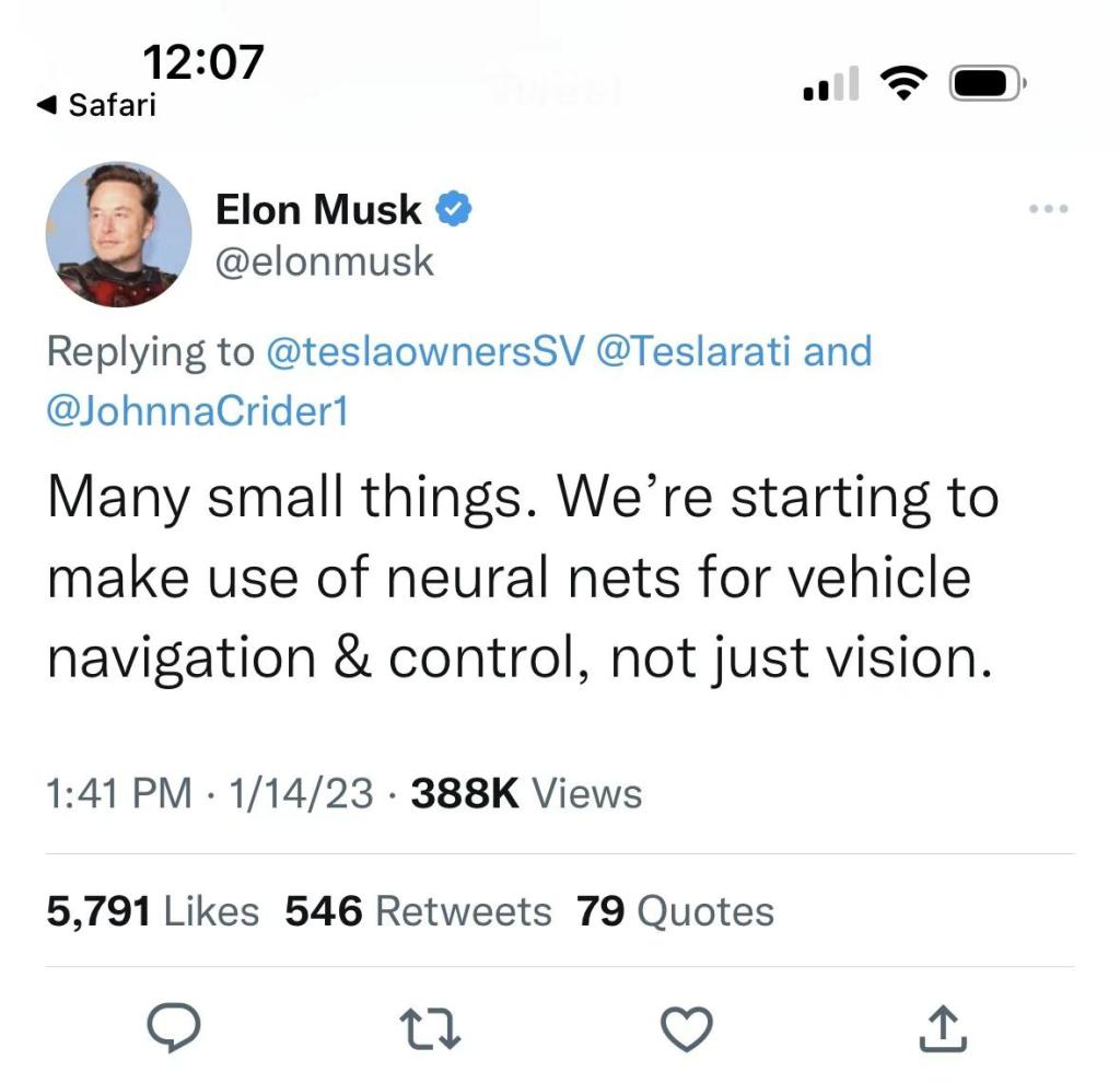 What?! 我一直以为导航控制已经大部分是 NN!怎么会现在才开始用?高估了整个自动驾驶行业的进展。所以控制决策一直只是logistic regression 加heuristic。那以后加上hidden layer 和activation function,就比现在更blackbox 了。预计未来几个版本会更“情绪化”,然后就是跃迁。期待。